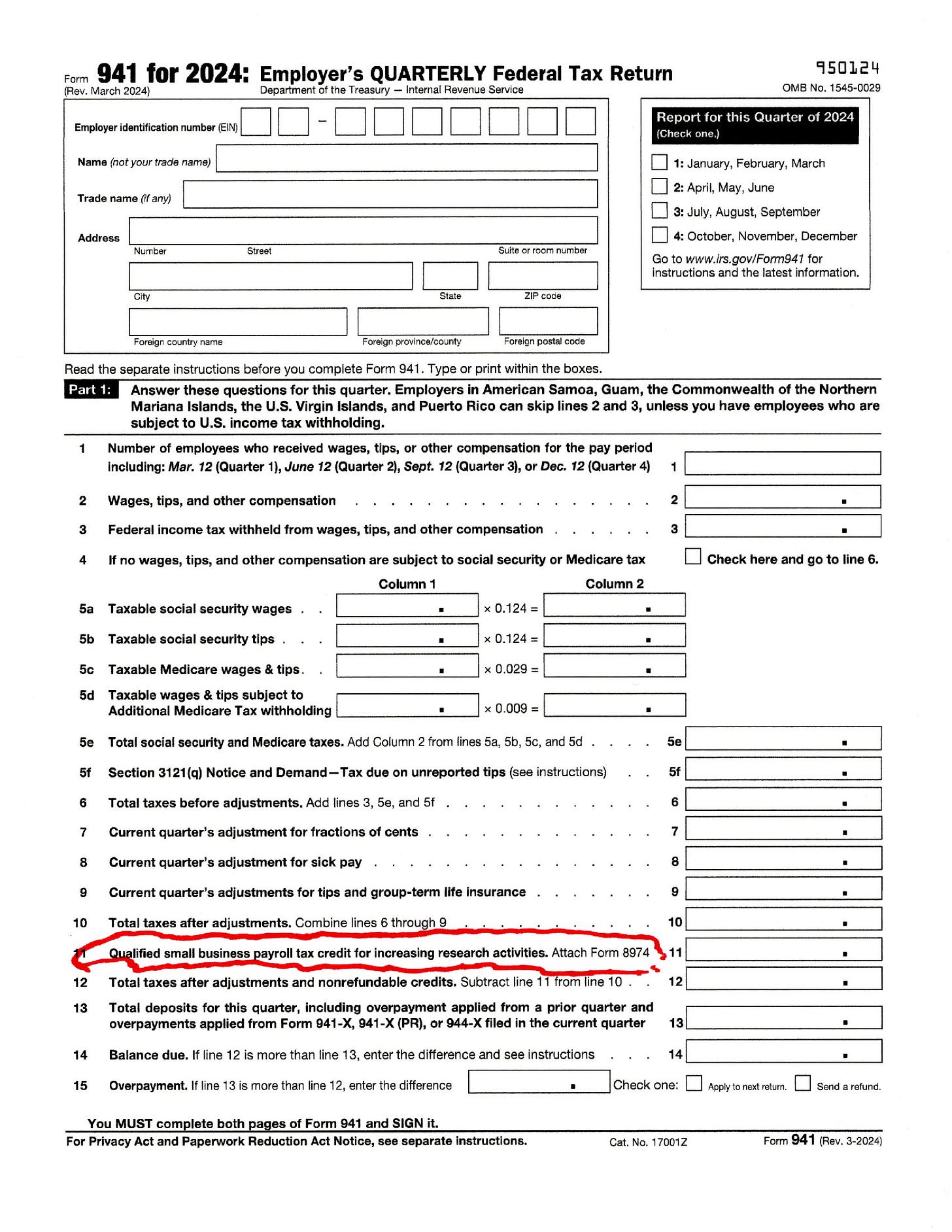 Imagine my surprise when I was filing Form 941 and got to line 11. “Qualified small business payroll tax credit for increasing research activities.” What? I had to look it up.